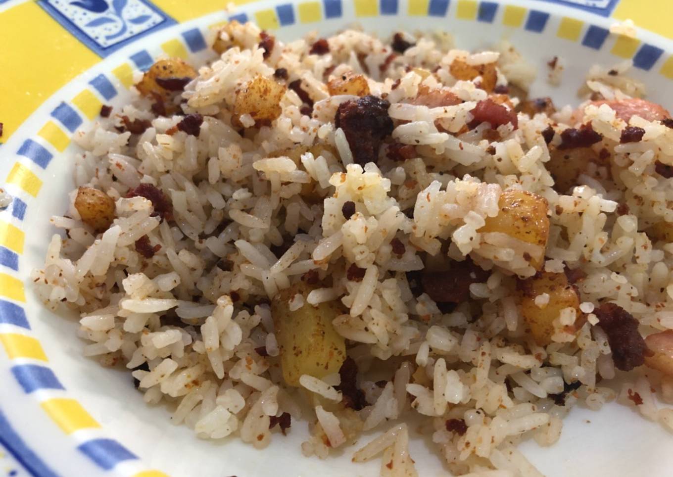 Exquisito Arroz blanco revuelto con Papas, Chorizo y un toque de Tocino
