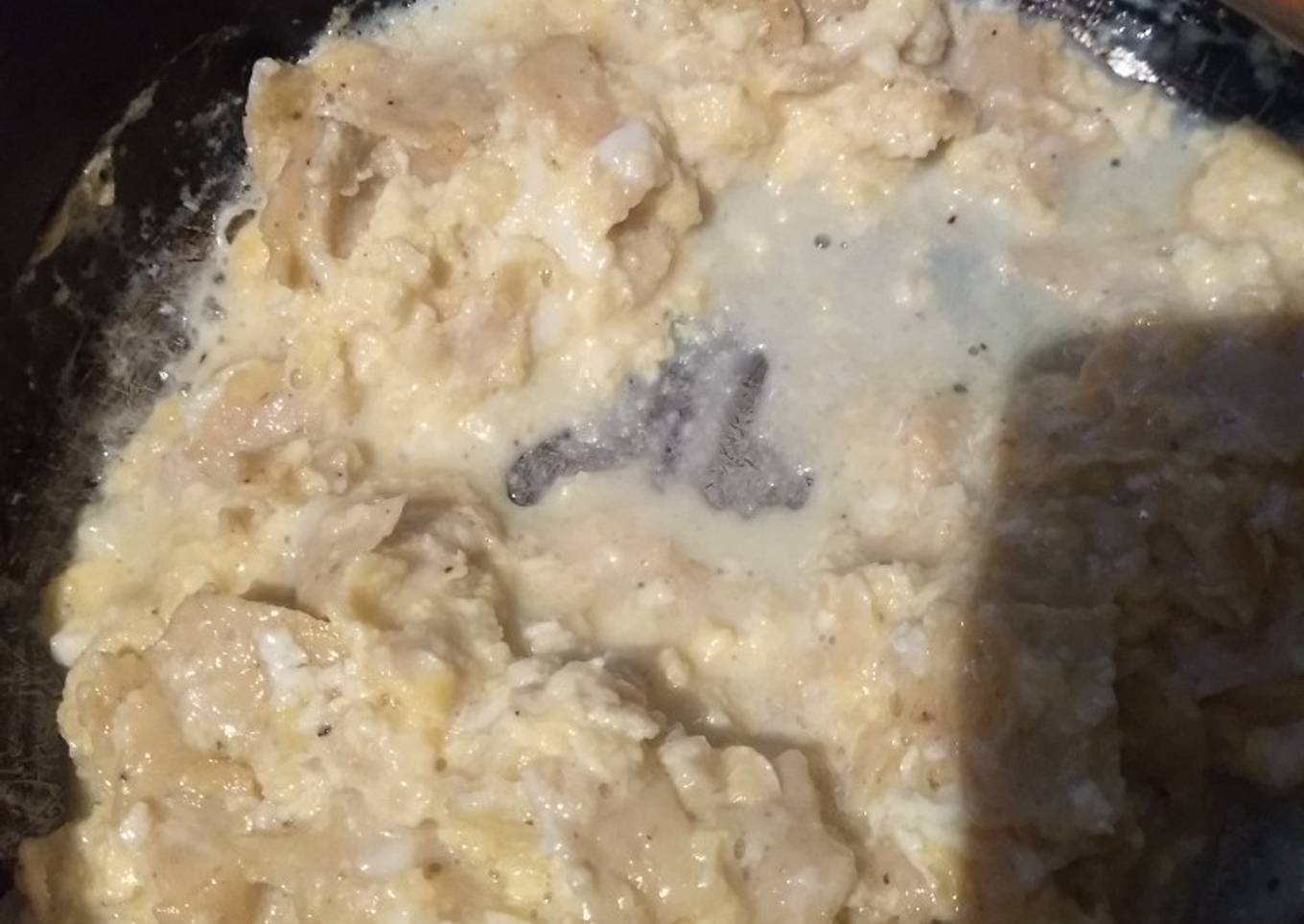 - Incorpora todo huevo, tortillas, sal y ponle un chorrito de leche para que no se pegue el huevo y se queme