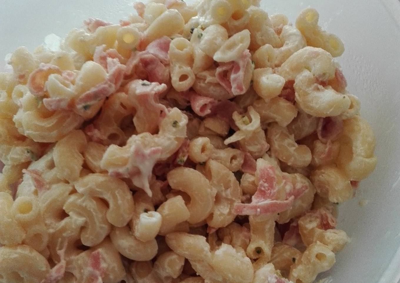 - Ya que está cocida la pasta se escurre el agua y se le agrega mantequilla o consomé de pollo, se mezcla y se le agrega trocitos de Jamón. Y listoooo