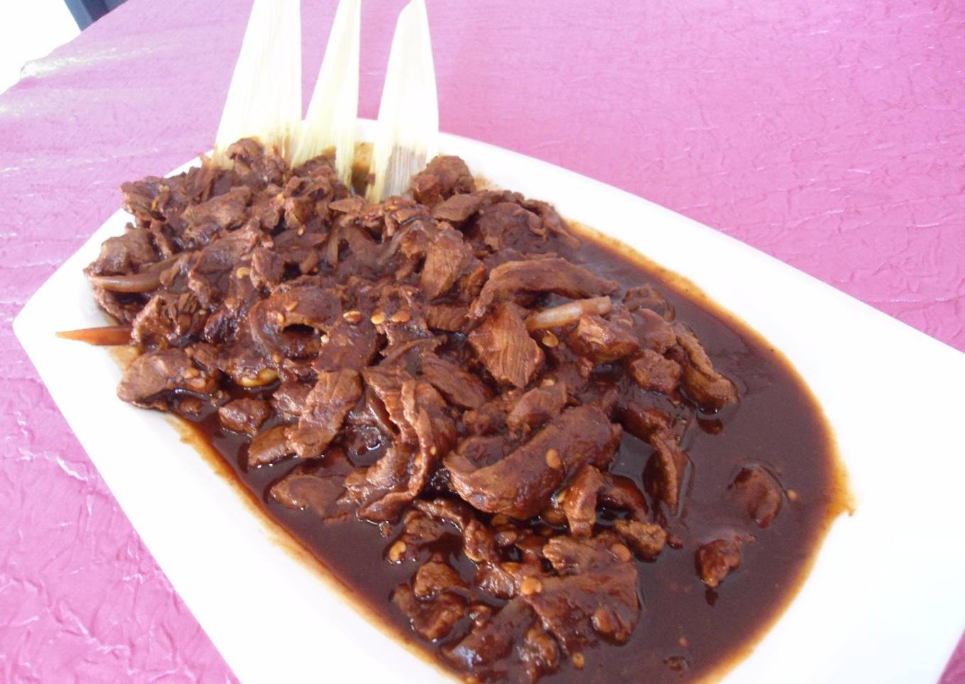 Bistec en salsa de chile pasilla