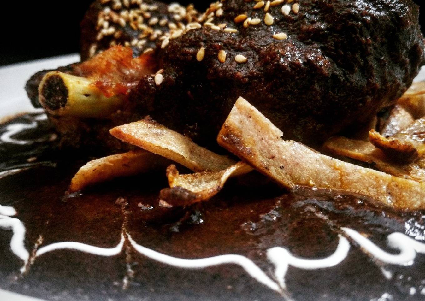 - Al finalizar estos dos últimos Procesos, solo nos queda el emplatado, sumerge el pollo en la salsa y sirve en platos entendidos, la crema la puedes agregar a tu gusto sobre la salsa de chiles y el adornado/acompañamiento de un baño de ajonjolí. PROVECHO!!!