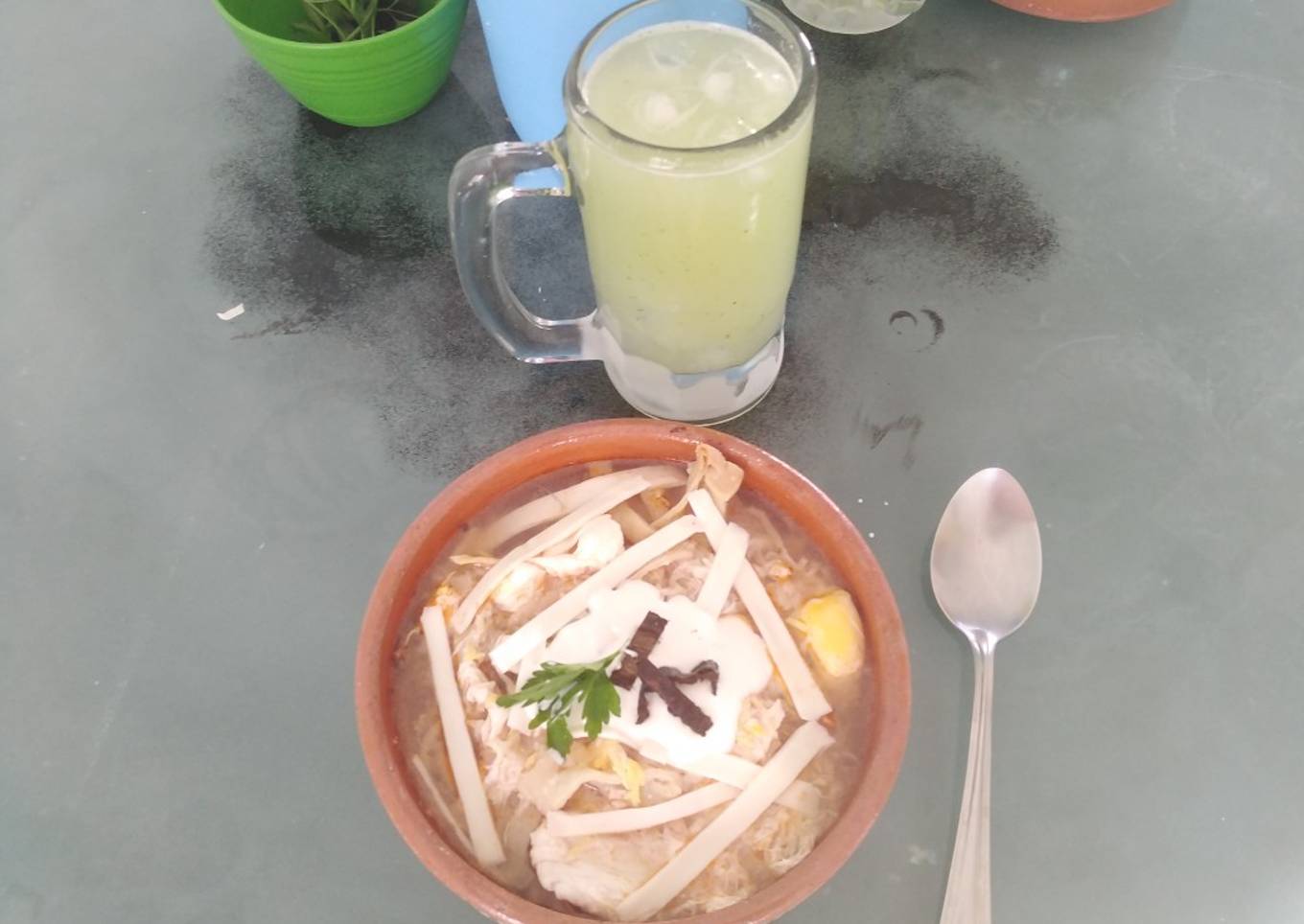 - Servir una porción generosa de frituras de tortilla en un plato sopero alto de preferencia, vaciar el caldo con el huevo ahogado encima para que comience a remojar la tortilla. Decorar con una cucharada de crema al centro, colocar unos cubos de aguacate y queso encima y unas rodajitas de chile seco. Que lo disfruten