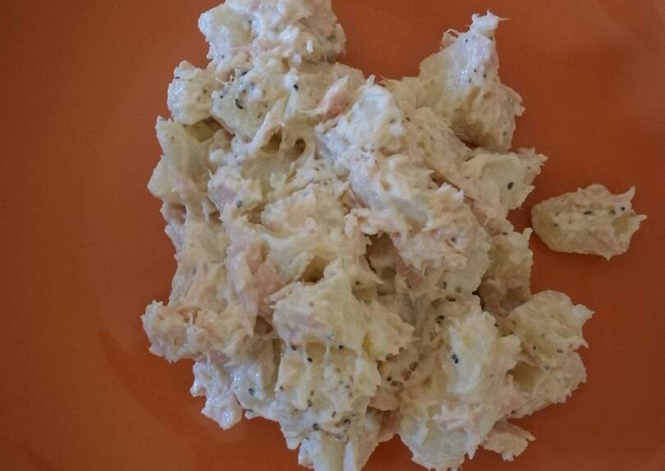 - Ya frías picar en cuadritos y agregar el atún y la mayonesa.